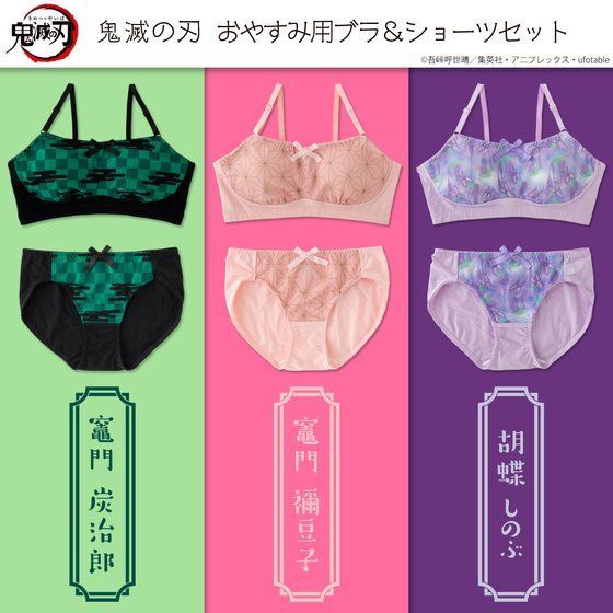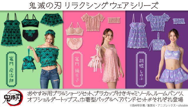 日本萬代旗下專門推出角色主題服飾、生活週邊的 BANDAI FASHION COLLECTION(バンコレ!)近日發表以《鬼滅之刃》設計的女性服飾組合,包含;晚安內衣、一字領露肩上衣、家居褲與 Bratop 罩杯式吊帶背心等。現今已於 PB 網站上開放預購,預計於 2021 年 2 月開始出貨。