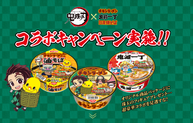 人氣動漫《鬼滅之刃》聯名商品一波接著一波,繼上次與藏壽司的合作後,今次該IP又與知名泡麵品牌「日清食品」聯手推出合作商品,包含日清雞湯拉麵、日清雞湯拉麵油拌麵,以及出前一丁等三款麵食,在限定包裝上還可以看到炭治郎揹著的不是妹妹,而是日清家的吉祥物小雞XD