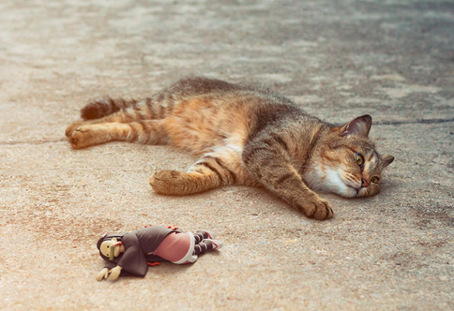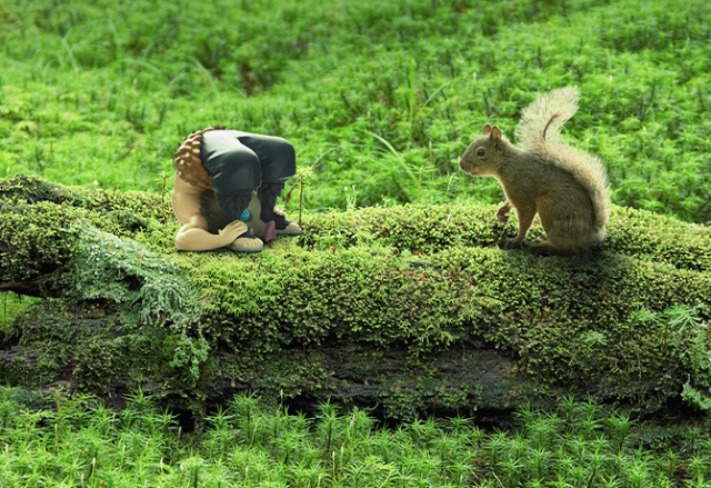 ▼妹妹禰豆子似乎並不喜歡哥哥背著日清小雞