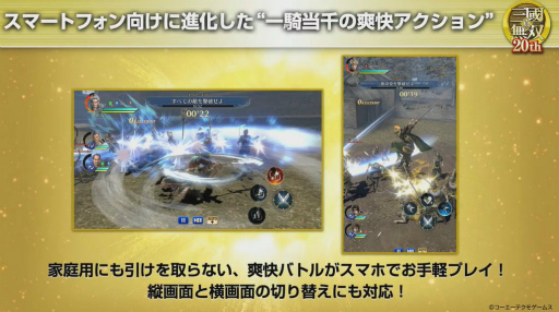 日本知名遊戲開發商光榮特庫摩於 9 月 27 日在 TGS2020 線上發表會的「真・三國無双 20周年記念番組」節目環節內,宣布了將會在手機平台 Android / iOS 上推出《真・三國無雙》手機遊戲。