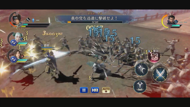 本作將繼承了《真・三國無雙》系列以往的割草爽快動作感,並成功將他手機化了。結合著豐富多彩的技能,既有著將敵人壓倒性打敗的爽快感,又有著能在智慧型手機上輕鬆簡單遊玩的操作性並存。
