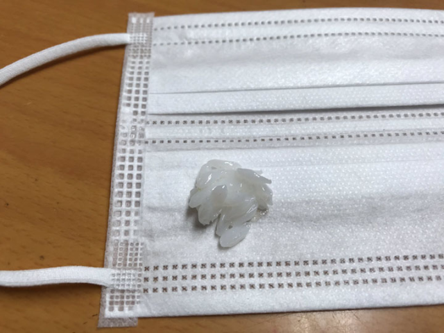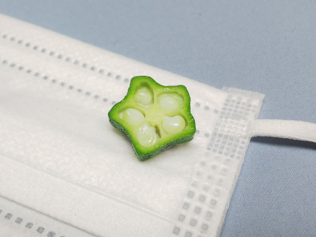 製作這些飾品的是ながお食研的よっしー(@yossy_sample),他擅長製作餐廳常擺在櫥窗供客人觀看以方便點餐的「食品樣本」,這個「可裝在口罩上的食品樣本」是利用小磁鐵裝在口罩兩面並吸附在口罩上,不但不會影響佩戴口罩呼吸,裝在上面看起來還挺有趣的,有種「戴口罩還能嘴邊帶便當」的感覺。