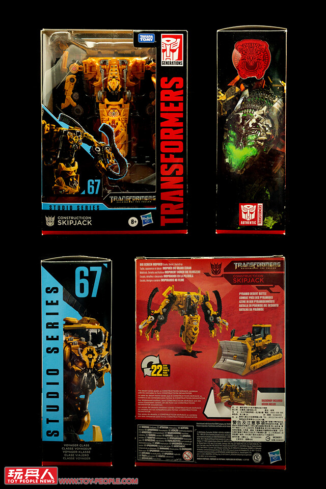 ▼ No. 67「飛魚」(Skipjack),登場於《變形金剛:復仇之戰》的狂派工程金剛(Constructicons)成員,擬態為黃色的推土機Komatsu D575A,與同僚一同組合為巨大的野獸「蹂躪者」(Devastator,或譯作大力神)。玩具本體重塗自No. 37的「狂虎」(Rampage),同樣具備了機器人/推土機/蹂躪者左腿的三變機能。