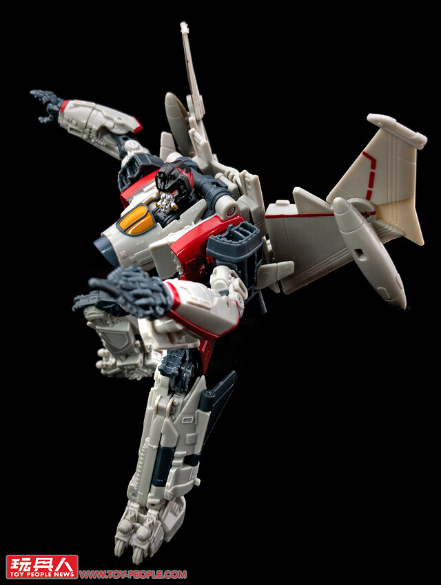 ▼ 戰鬥機模式,不曉得是不是礙於授權的問題,玩具實體並未還原劇中的F-4幽靈(Phantom)II戰鬥機,不過單純以玩具的角度來欣賞,機首與機身交界的漸層塗裝相當漂亮,整體的份量也很充足,算是相當帥氣有型的一款戰鬥機。