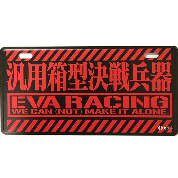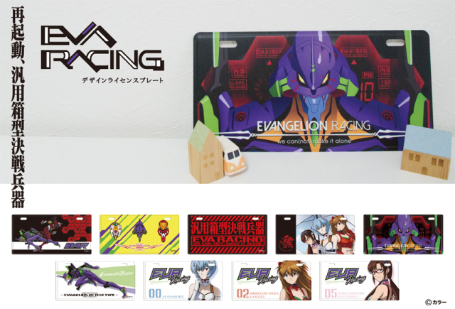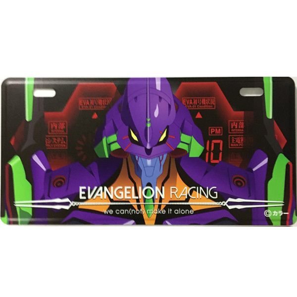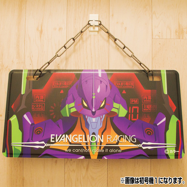 《Eva-racing》為 Khara 於 2010 年組成的職業賽車隊伍,旗下有許多車手於世界賽事出賽。而這次推出的「福音戰士鋁製車牌」,以福音戰士的特色來設計,有初號機、二號機、零號機等機體,以及賽車女郎服裝的三位女角-綾波零、明日香與真希波。鋁製的車牌可以透過鍊條懸掛在牆壁上,作位居家擺設非常具有特色,放在營業用的商店陳設上也很有味道,甚至放在車子裡都有看頭 XD。