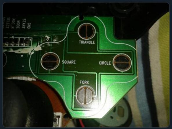 ▼PS電路板內清楚寫上FORK,象徵叉叉而非英文字母O
