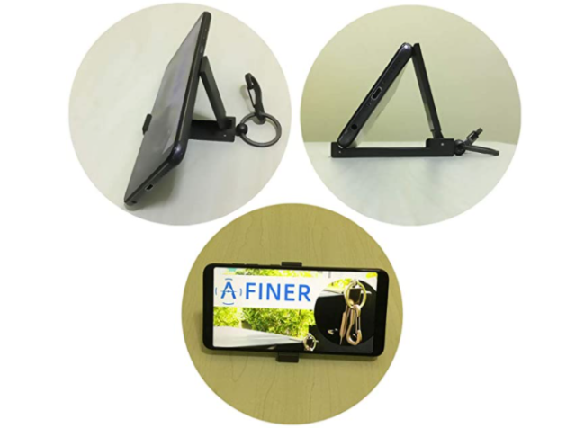 另外,當一個人回到飯店或旅館,還能將該桌勾放置於桌上,將其三角型構造卡榫後,作為平板和智慧型手機的支架,甚至因應視覺面調整適宜角度,讓你在外面追劇也不落人後。