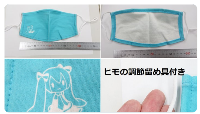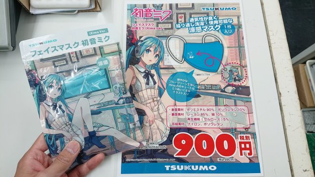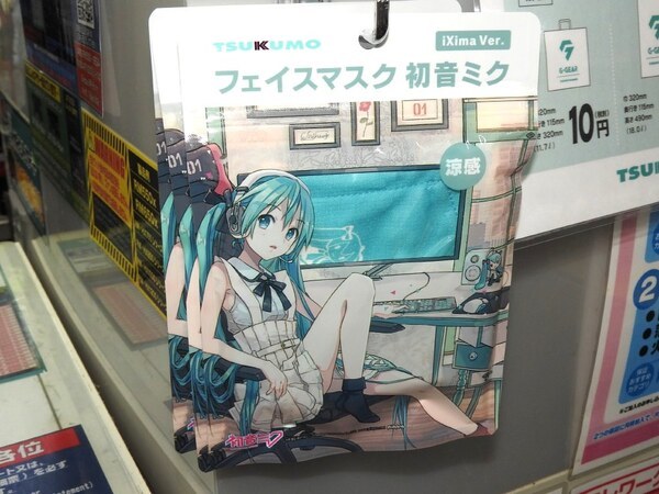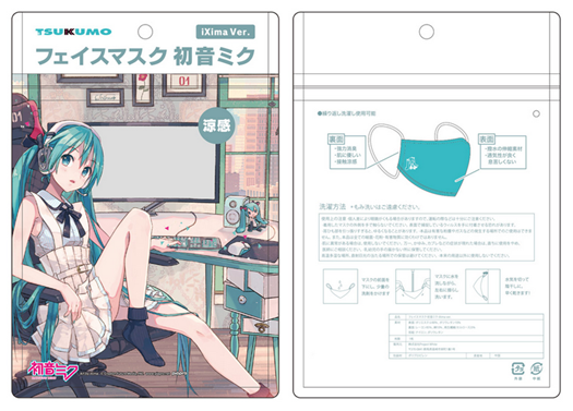 PC相關專賣店TSUKUMO,十月推出一款初音未來口罩「フェイスマスク 初音ミク iXima ver.」附一張精美插畫,價格為990日圓。