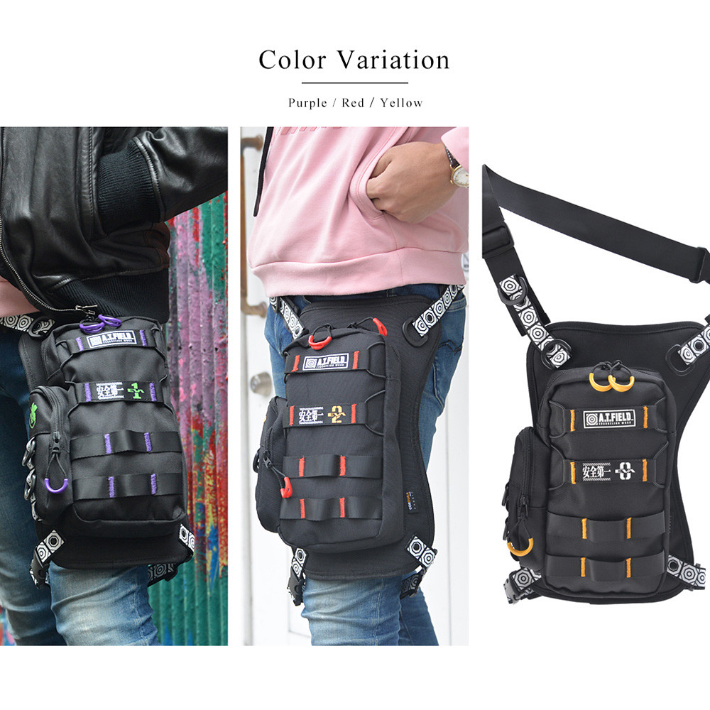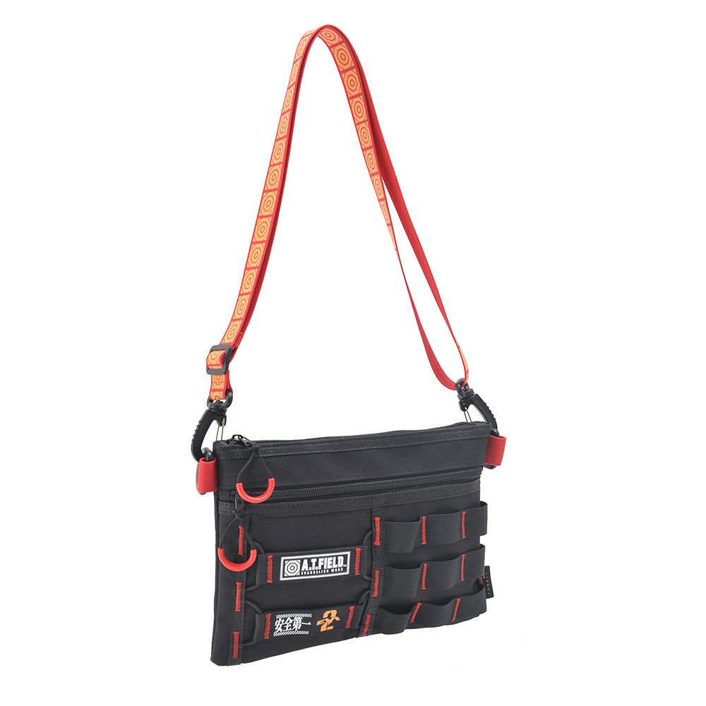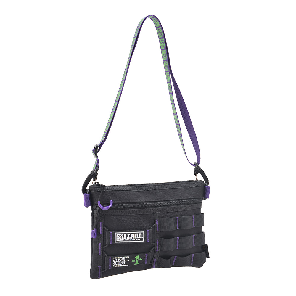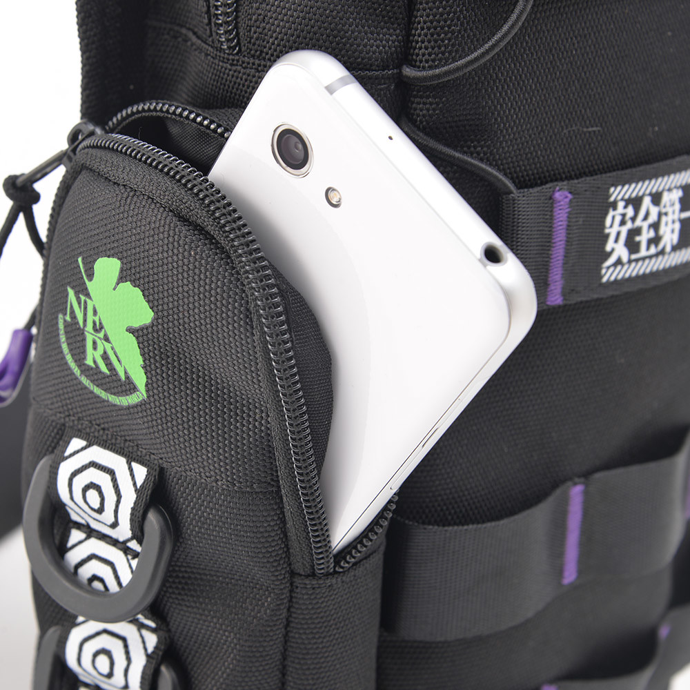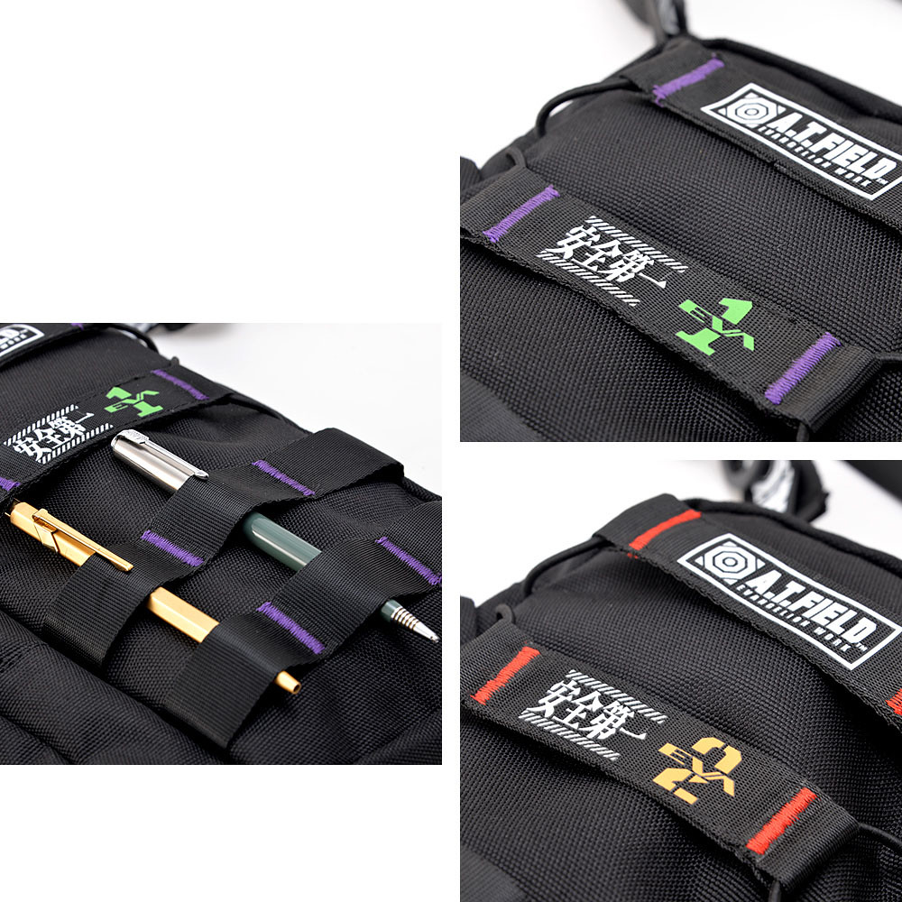 初號機紫、貳號機紅、零號機黃 三款經典配色,背帶處更是有 A.T.FIELD 的圖騰印花設計,多功能的多種收納空間和側袋扣環設計,掛在大腿上帥氣又實用~