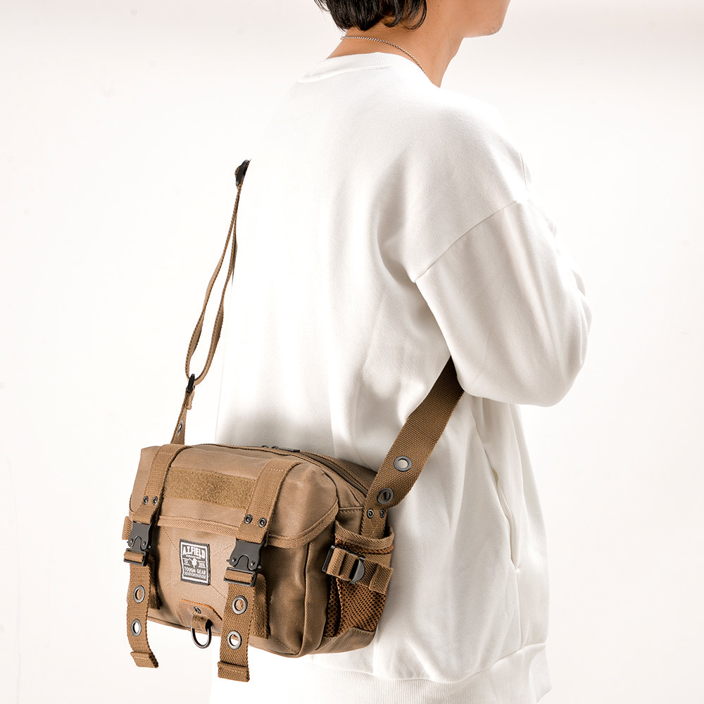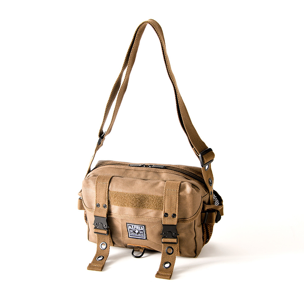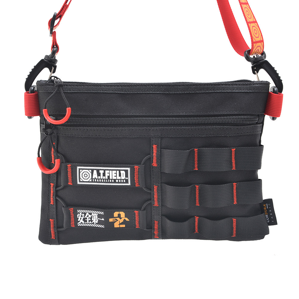 採用細緻柔軟的布料材質,耐磨耐髒,黑色與卡其兩色搭配 A.T.FIELD 標誌,充滿低調工業風時尚感。實用的超大容量,可以放入 500 毫升水瓶,還有細節勾環方便懸掛!機能與時尚兼具。