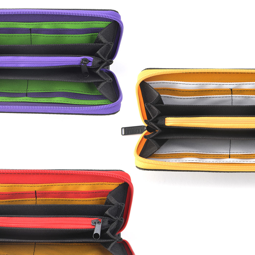 時尚的撞色感,同樣有初號機、貳號機、零號機三種款式。加長的拉鍊設計和內部鈕扣開關,開啟收納都方便;雙隔層、雙零錢袋,多達14張卡片的卡槽,分類一目瞭然!