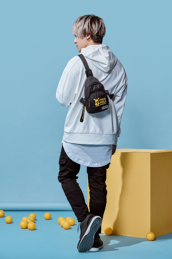 『潮黑皮卡丘』系列潮包使用潮流百搭的黑色為底,搭配充滿活力的黃色皮卡丘與閃電剪影,強烈的黃黑對比帥氣、皮卡丘的坐姿超可愛,帶來十萬伏特級的魅力!