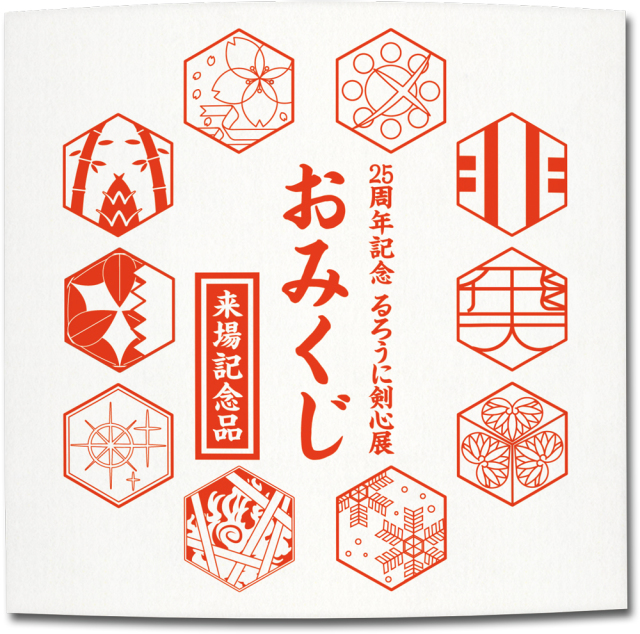 入場將會贈送紀念品 - 御神籤,總共有 10 位角色的代表的籤隨機發送,包含;緋村剣心/神谷薫/明神弥彦/相楽左之助/斎藤一/四乃森蒼紫/志々雄真実/瀬田宗次郎/雪代縁/比古清十郎。