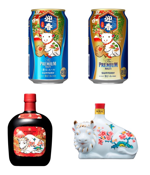 日本製作啤酒及飲品的三得利株式會社(サントリー , Suntory)近期釋出了 2021 年,以牛年為主題的特別瓶裝。包含旗下的三得利頂級啤酒 The PREMIUM MALT'S 系列、三得利皇家威士忌、三得利老威士忌。