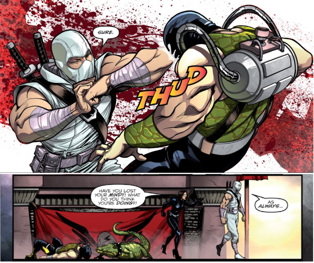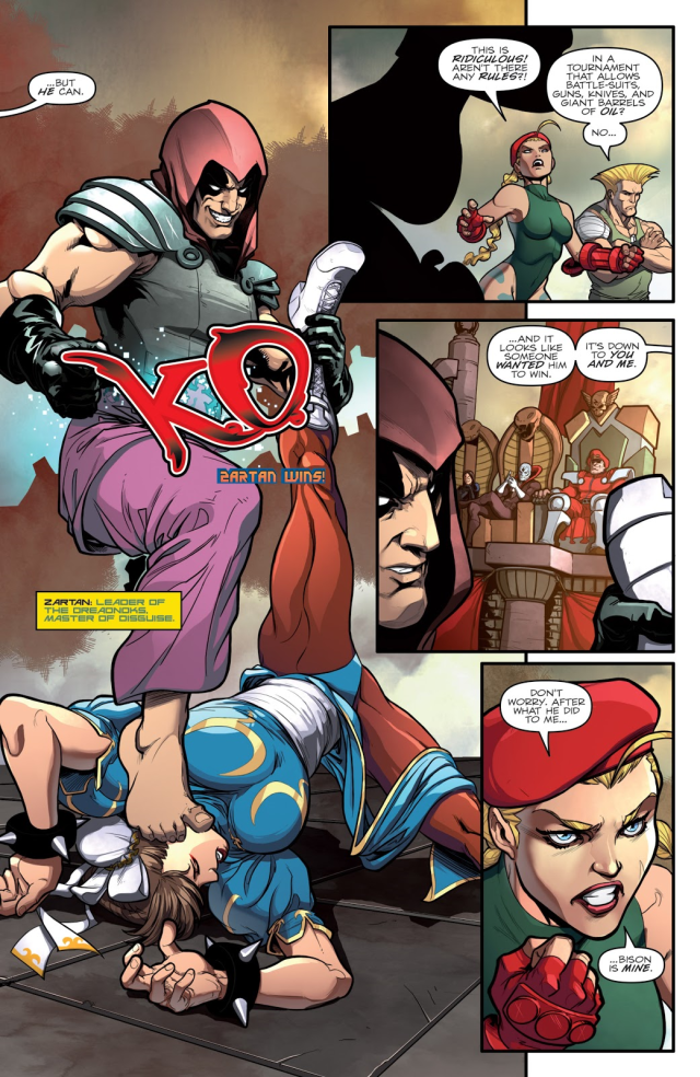 撒旦的下作行為自然令與春麗同一陣線的倩咪(Kammy) 感到不齒,然而正如同凱爾所吐槽的:這場比賽本來就不禁止使用槍械與刀劍等武器一樣,主辦單位針對撒旦的冒名行為也沒有作出任何表態撒旦是自己人啊。而眼鏡蛇方面,男爵夫人(Baroness) 更是毫無運動家精神的要求白幽靈(Storm Shadow) 接下來在對上庫洛克大師(Croc Master)時直接打假拳認輸!然而這對重視榮譽的白幽靈來說無疑是一種污辱...