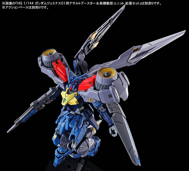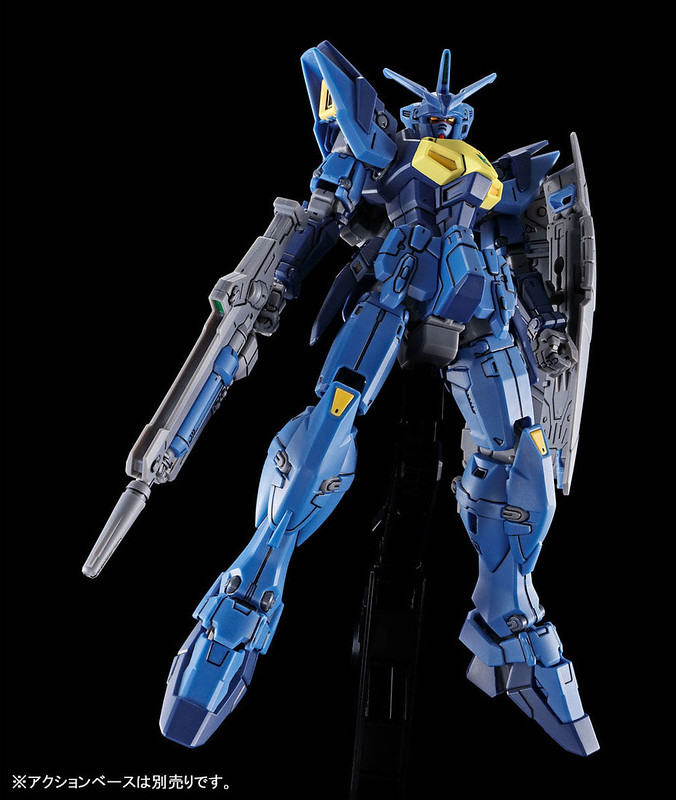 基本武裝包含加速步槍、光束劍、G-UNIT盾牌,也能與另售的「突擊推進器&高機動型組件」套件組合,再現大氣內高機動戰規格、宇宙空間戰規格!