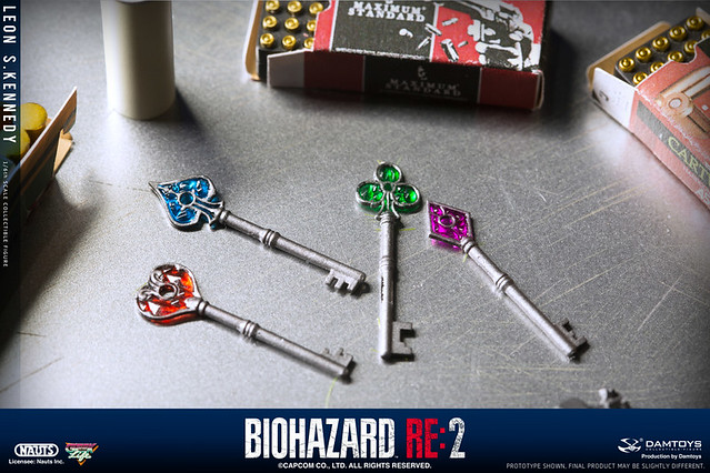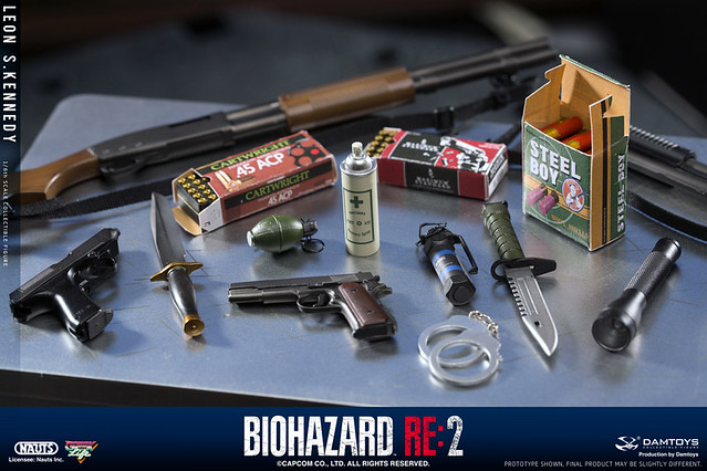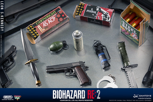 配件部分也非常之豐富,光是武器的配件就有數種,遊戲中出現過的戰鬥小刀、半自動手槍、兩款散彈槍,MP5 衝鋒槍和火箭筒全都有,還包括手榴彈與閃光彈,另外還有多種小配件,像是各類槍的彈藥盒、急救噴霧罐、手銬,以及過關用的四種鑰匙。假如你是非常喜歡惡靈古堡的朋友,非常推薦購入收藏喔!