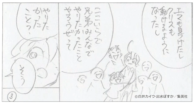 本次官方公開了,在《連載完結紀念 約定的夢幻島展覽》之中會展出本篇漫畫完結後的艾瑪一行人的後續故事,並全部共有 19 頁,剛好是週刊連載一話的份量。目前已經正在繪製分鏡草稿了,官方也釋出了一小部分給各讀者們觀賞。後日談的漫畫全部內容將會收錄在展覽入場票券附贈的特典小冊子『Tracks to the NEVERLAND』內。附贈特典冊子的展覽票券已於 10 月 5 日在日本的「LINEチケット」服務上開賣,數量有限,要買要快。