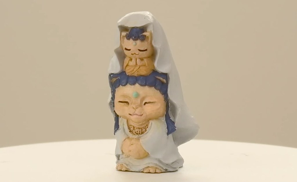 ガチャガチャ第二弾。ねこ菩薩(仮)のビジュアル解禁です。ねこ如来よりさらに色も形もバラエティに富んでて、はっきり言ってガチャのクオリティではありません。作者もこれは流石にやり過ぎかなと思いながら造ってました。QualiaさんのYoutubeチャンネルで紹介されてます。https://t.co/EUBNDvH6aT pic.twitter.com/RyiQyDixt3