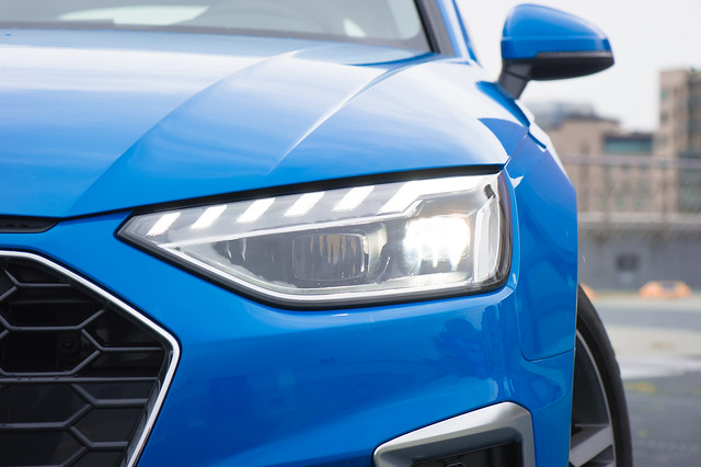 H:就從外型開始說吧!旅行車的功能與性能一直都讓我很喜愛,不過過去對於市面旅行車外型有一點點不滿意,但是,but,全新 A4 Avant 設計線條呈現出讓我難以拒絕的誘惑......就像一個線條極為優美的大型公仔玩具一樣。通常一輛車的車頭會帶給車主很強烈的印象,全新 A4 Avant 燈組有銳利的切角線條,不論日行燈或者夜間,搭配六角盾形水箱護罩與寬闊進氣口的霸氣感,都散發出......如同動漫主角與你對視的震撼感覺。