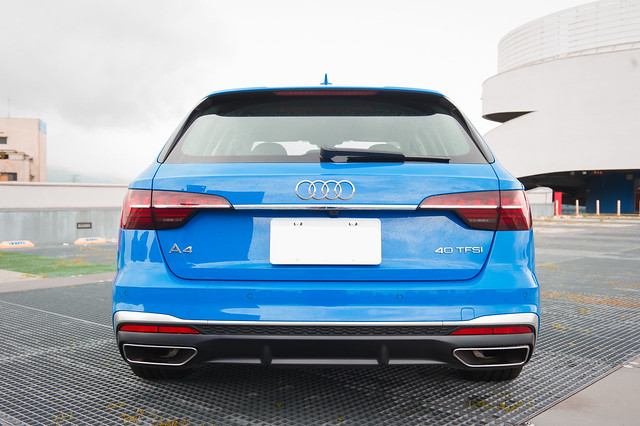 H:車尾造型部份,A4 Avant 在柔和與動感間擁有非常好的平衡,一掃過往「旅行車=好爸爸車」的刻板印象,像我也想當帥氣的爸爸啊!A4 Avant 扁平式梯型排氣尾飾管等造型設計,在旅行車調性中加入更多動感風範,而後車燈的線條,更讓全新 A4 Avant 車尾線條帶入了豪華感,跟在 A4 Avant 車後的車是幸福的!一路都能欣賞這一眼傾心的矚目背影!