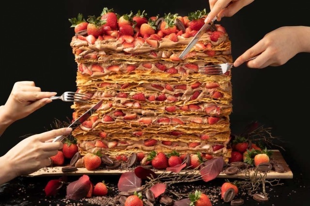 其中位於日本的神戶北野飯店,將在今年的11月1日起舉行聖誕派對晚會「ナイトデザート Private Party ~Christmas~」,在這場聚會當中,你可以邀約你的三五好友一同前往此地,享受超級巨無霸的千層草莓蛋糕「ミル・ミルフィーユ」。