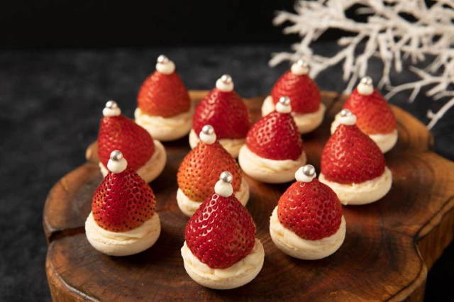 當然除了巨無霸草莓蛋糕外,在這場聖誕派對的餐點還有其他小巧可愛的造型甜點,並且一樣都是以草莓做為主題,你可以看到不論是奶油杯子蛋糕、或是蛋糕捲,都少不了鮮紅可口的草莓果實。