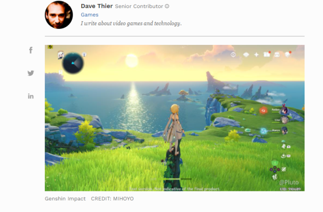 另一方面,Dave Their也說明《原神》做為中國大陸於國際上市場躍進的轉捩點,並獲得網路龐大聲量,即使一度被人們以《薩爾達》抄襲為痛處。然而就主機而言則展現PS4和SWITCH平台獨占與XBOX亞洲區的冷門弱勢,在IGN Japan與「米哈遊」開發商的談論消息中,認為該遊戲也將成為PS5後續鋪陳的策略,但消息依然非常混亂。