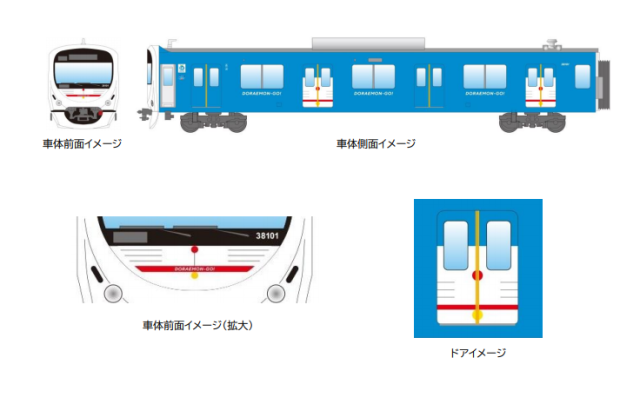 ▼車體的外觀設計平面圖,小編覺得自動門的部分相當討喜,哆啦A夢眼睛的部分都變成了窗戶了XD