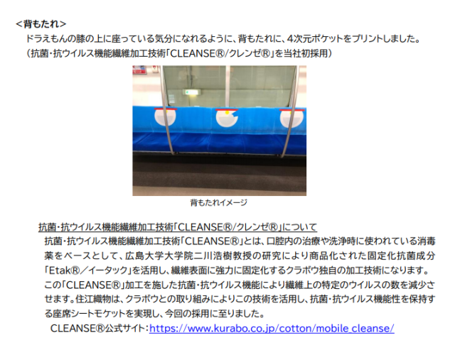 其中小編最喜歡的是拉環的藍白配色,遠遠看起來就好像是哆啦A夢那圓滾滾的手一樣,告訴你只要牽著手,你就能安心搭乘這班電車。也當然,為了因應現在武漢肺炎疫情,在每一張「百寶袋座椅」上,特別採用特殊抗菌防毒的技術「CLEANSE」,來達到防疫的最佳效果。