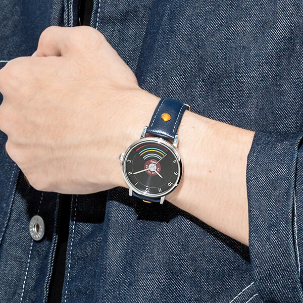 錶面上有著英文的「放學後TEA TIME」 團名,配上五人所代表的色系線條。錶面背後放上團的下午茶 LOGO,十分可愛~。