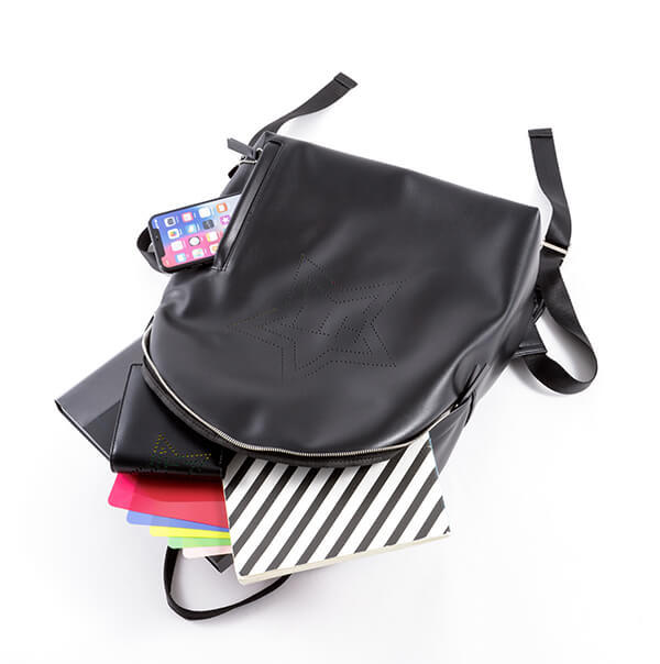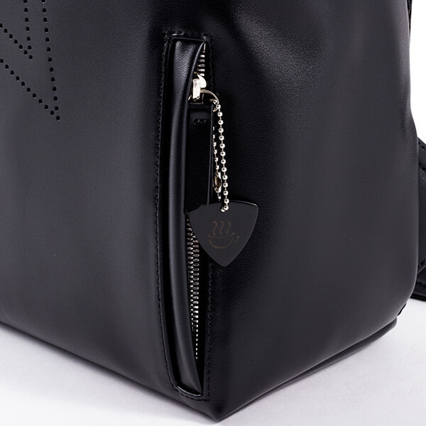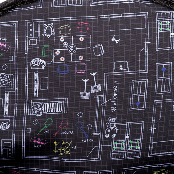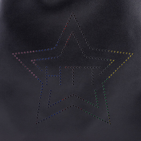 漆黑的包包上面有著星星 LOGO,上面有著英文團名縮寫 HTT,隱隱約約閃爍著色彩,是個低調又不失特色的包款。包包附上有著團 LOGO的吉他 Pick,喜歡 K-ON 又有彈吉他的粉絲應該會很想要才對 XD。包包內裏的花紋也很可愛,打開別有不同的風味。
