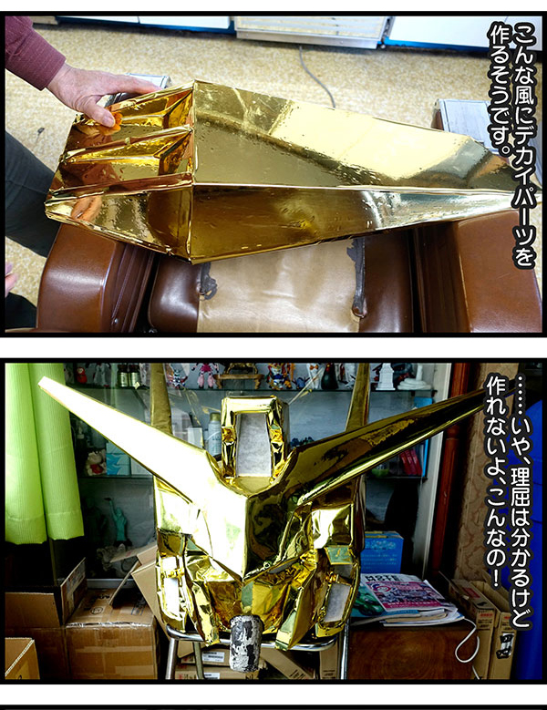 而這些機體全是理髮店店長親手打造的,就連那個初鋼頭卡拉OK廳也是出自他之手,不過店主並不是狂熱鋼彈迷,只是因為「想製作很大的東西」,而且常聽到附近的高中生談論著鋼彈的話題所以才製作這麼多的鋼彈,而他也在這過程中十分享受,對於這種單純的想法引發出強大的行動力,小編對此感到相當欽佩。
