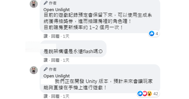 ▼ 目前FB營運官方陸續公布營運並與玩家留言中透露未來規劃