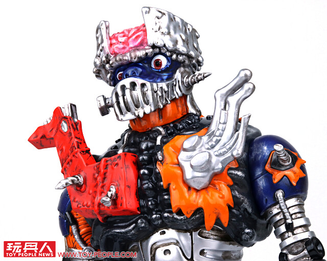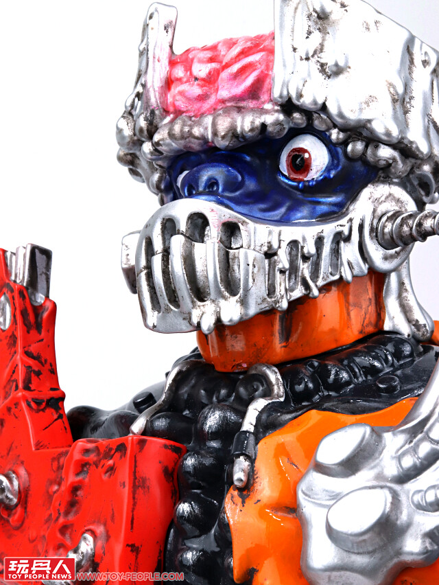 本次 Winson 重新詮釋的 Mazomger Z 再次以猿猴為基底,除了無敵鐵金鋼厚重的機械感之外,還大膽地注入殭屍元素,高度來到 30 公分極具魄力,豐沛細節更是令人大呼過癮!原本是指揮艇的部分現在是粉紅色大腦,全身護甲也有著大量的毀損,不只是機械內構,連橘色的肉體都暴露在外,處處都能看到 Winson 強烈的個人風格,再加上金屬感塗裝與舊化處理,實在讓人心動呀!