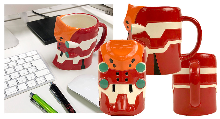 以貳號機為設計的「貳號機 頭部造型馬克杯」,在馬克杯上重現《福音戰士新劇場版》劇中,頭部如皇冠狀造型的貳號機。在橘紅杯身上,四顆跳色的綠色眼睛相當醒目~除了可以作為杯子使用,也可以拿來當成桌上筆筒等擺飾。