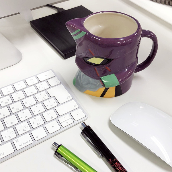 「初號機 頭部造型馬克杯」,將初號機頭上特徵的角、銳利的眼睛以突起的下顎等造型化為馬克杯,經典紫綠配色,給人強烈的視覺衝擊!在辦公室使用一定會引起注目!要拿來喝什麼比較適合呢?