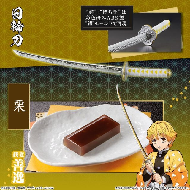 《鬼滅之刃》最近因劇場版即將上映,不但電影票預購票一票難求,周邊也是出不完,連遊戲合作也是持續不斷,連在台灣的名人-館長都以其電商部門販售《鬼滅之刃》服飾並訂為「鬼滅月」。最近萬代更推出了全新商品「日輪刀&羊羹組合」,除了羊羹可食用外,日輪刀可以用來切羊羹,也可以擺設,還有一個禰豆子的竹筒可以置刀 XD 。售價為 7,990 日圓,目前已於日本 PB 網站預購,預計於 2021 年 3 月正式出貨。