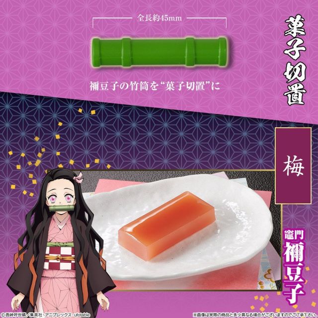 售價 : 7,990 日圓 ( 一組,包含五款羊羹,四款日輪刀與禰豆子竹筒置刀架 )