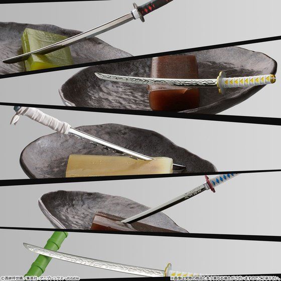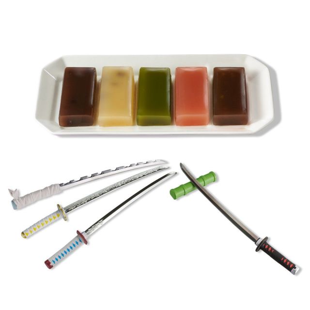 由五位角色-炭治郎、禰豆子、善逸、伊之助與義勇作為主題設計,分別有五款不同口味的羊羹。除了禰豆子外四人都有自己專屬的日輪刀,禰豆子則是竹筒置刀架。
