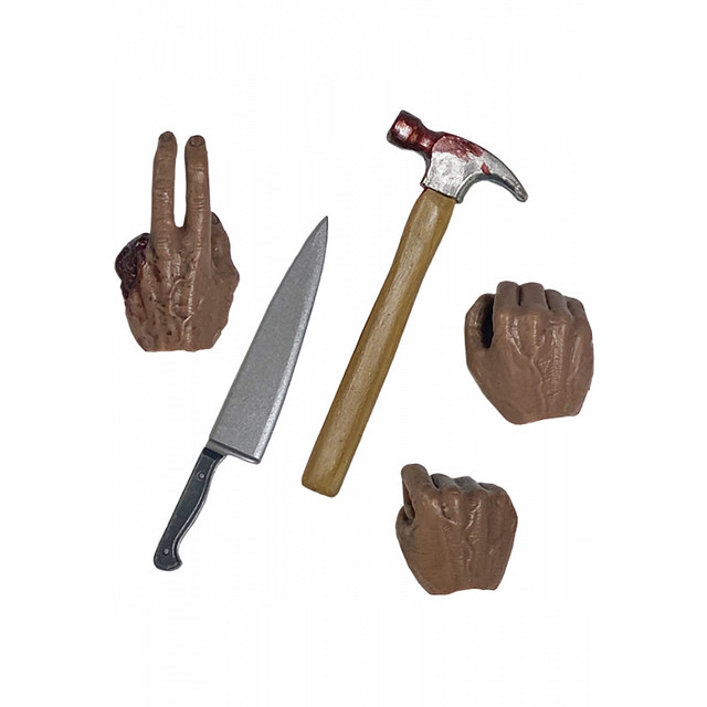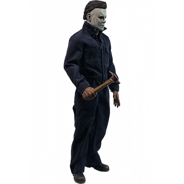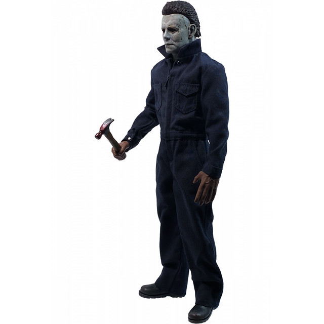 前述也提到本系列作有不少相關作品,連帶地也使面具殺人魔的造型都或多或少有些不同,這款由 Trick or Treat Studios 所推出的面具殺人魔麥克‧邁爾斯,採用的是 2018 年的新版造型,1/6 比例製作,全身有 30 多處可動關節。基本上與大家所熟知的形象相去不遠,比較看得出差異的大概就是面具的表情比較有不平整的痕跡,以及身穿的深色工作服較顯寬鬆些。配件部分有可替換的手部零件(包括電影中被開槍打斷的手指)、兇刀和鐵鎚。