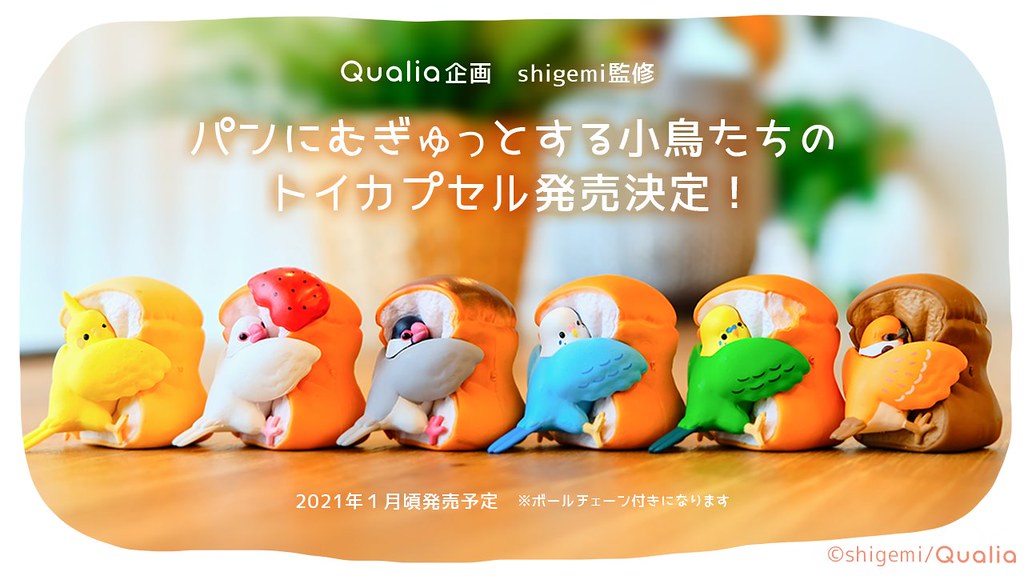 將日本療癒系插畫家 shigemi 筆下,有著呆萌豆豆眼的撲進麵包的小鳥(むぎゅっ鳥)系列立體化!有興趣的玩具人可以參考 shigemi 的個人推特,欣賞更多的作品~