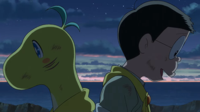也因為這是繼原版《哆啦A夢:大雄的恐龍》所改編的原創動畫,因此在故事上也埋了不少令人為之動容的感人橋段,雖然這些元素早在《大雄的恐龍》就早已體會過…喔不,或許正是因為早在多年前就已經體會過,所以才會特別在情緒一層一層堆疊的情況之下,冷不防地給你一顆超級大的催淚彩蛋--「比助(嗶之助)」。