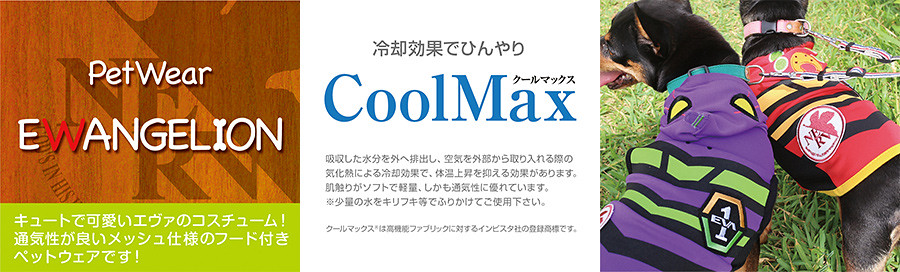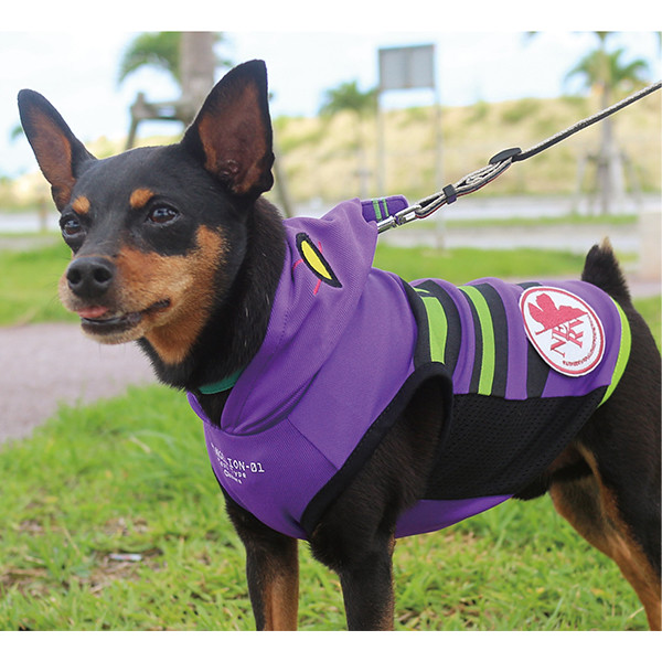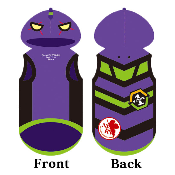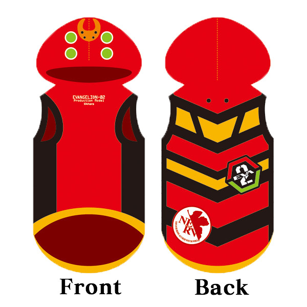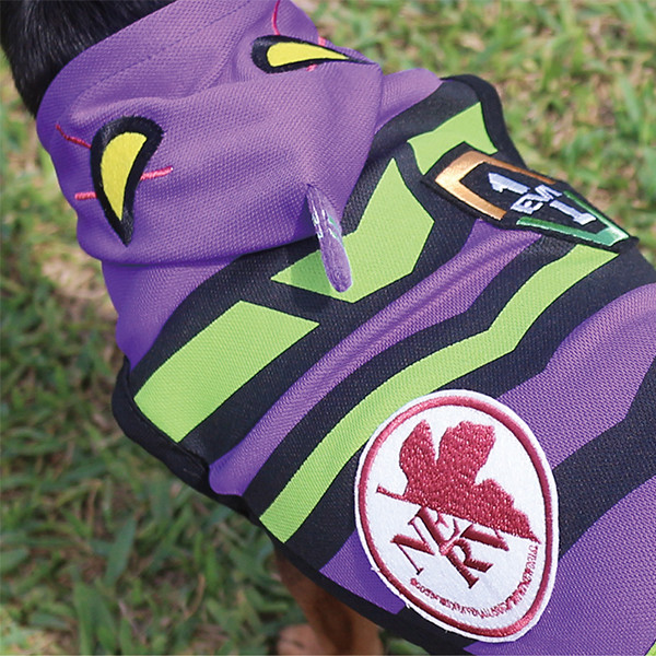 將可愛的寵物衣裝換上EVA風格,分別為初號機、貳號機兩種款式,以機體造型為設計,採用具有透氣吸濕排汗效果的 Coolmax 材質製作,因此即使在炎熱的天氣,寵物也可以舒適地穿著。在服裝上除了初號機招牌的紫綠配色,帽子上更有初號機頭上的角等特徵造型;二號機醒目的紅橘配色,穿上身後活潑可愛,還有二號機、NERV LOGO的刺繡片設計。多款尺寸可以選擇,喜歡福音戰士又有飼養寵物的玩具人可以參考!
