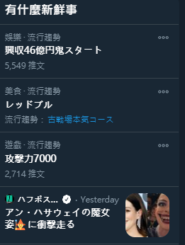 ▼《鬼滅之刃》 迅速攀升的現象也成為了日本推特熱搜No.1