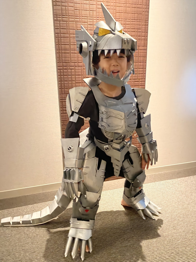 日本推主handmade.den(@HandmadeDen)為了兒子的幼稚園萬聖派對親手製作超級帥氣的《機械哥吉拉》中的「三式機龍」裝扮,製作過程全手工,而且這裝扮更是在8~9月時就在策畫的,不管是設計圖還是製作出來的成品,每個都是一點一滴用心打造的,可見父愛有多麼的深厚。
