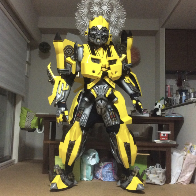 另外,這位爸爸也在兩年前的萬聖節做過《變形金剛》的大黃蜂裝扮,完成度也是高到不行,當然除了裝扮,也會做一些有趣的手工藝品,有這種熱愛孩子和手工藝的爸爸在身邊我想一定是件非常幸福的事吧XD