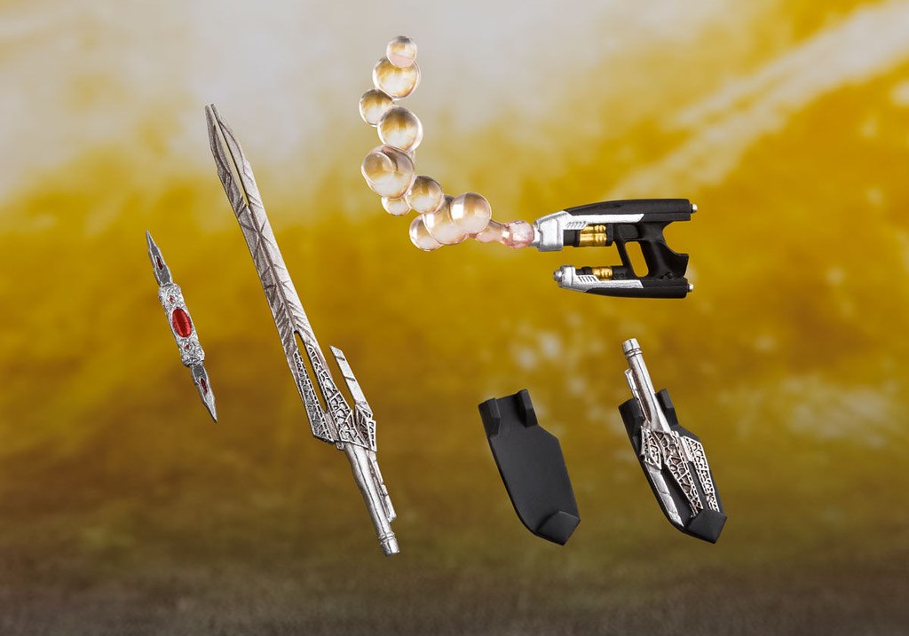 另外還有短刀與劍的皮套,以及帶有泡泡特效的星爵專用武器Quad Blaster,搭配S.H.Figuarts 星爵、S.H.Figuarts 薩諾斯,或是S.H.Figuarts 涅布拉共同賞玩,重現《復仇者聯盟:無限之戰》的經典場景!