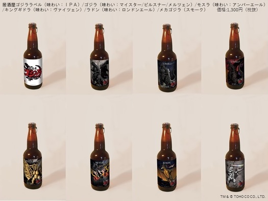 日本電影巨頭東寶(TOHO)在15日宣布與白糸酒造株式会社合作推出一款哥吉拉啤酒。此次合作是為了慶祝11月舉辦的哥吉拉誕生66週年祭典(因疫情關係,今年的慶祝活動改由網路線上播出)。此商品共有八款啤酒,每款啤酒均以東寶怪獸命名,口味也有所不同。