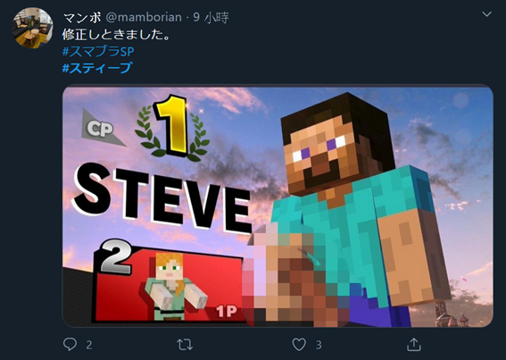 發售快兩年,至今仍熱度不減的《任天堂明星大亂鬥 特別版》,不斷有新的鬥士參戰來保持新鮮感,最近加入戰局的是《Minecraft》史提夫,在今日9.0.1版本更新後修正了方塊和礦車在戰鬥中的問題,但是有眼尖的網友發現史提夫勝利畫面中,手上的肉排不見了。